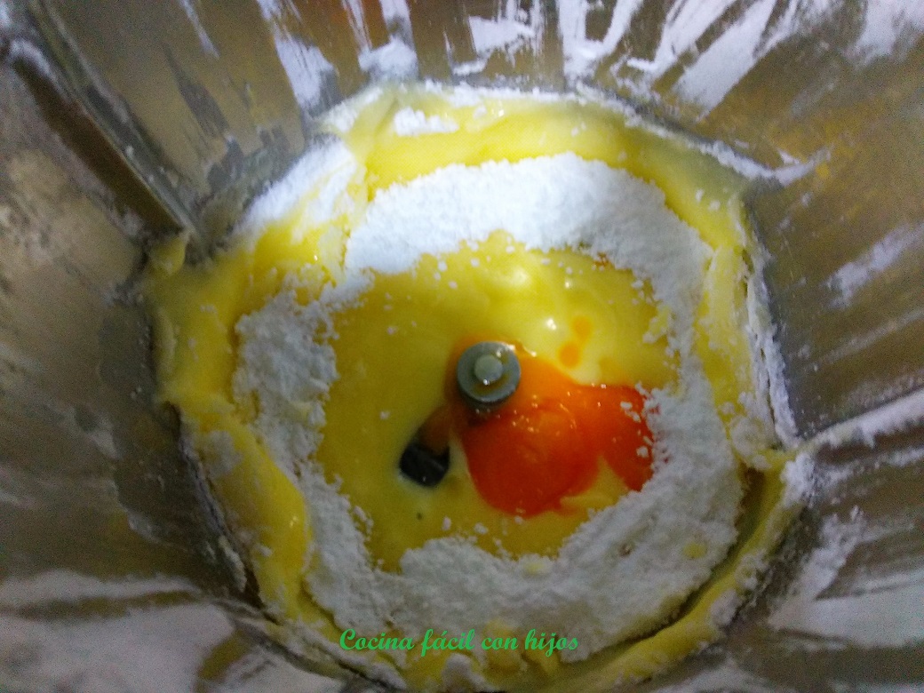 Incorporamos las yemas de huevo a la mezcla, y seguimos batiendo con batidora, hasta que estén perfectamente mezcladas.